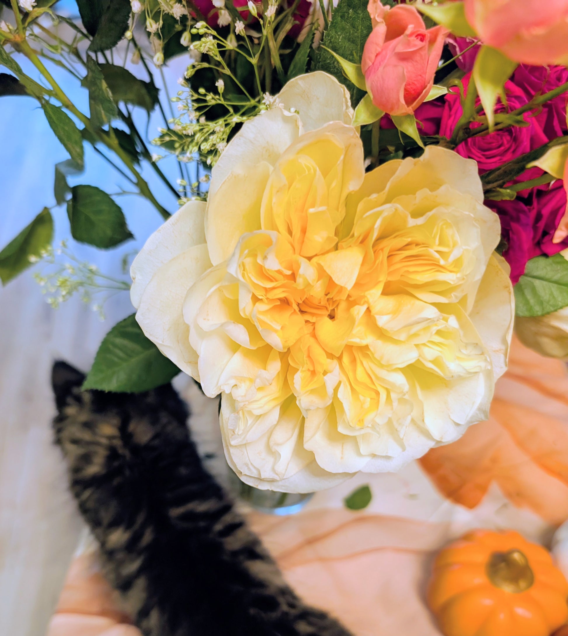 Cutting rose variety, lasts 10 days in vases.